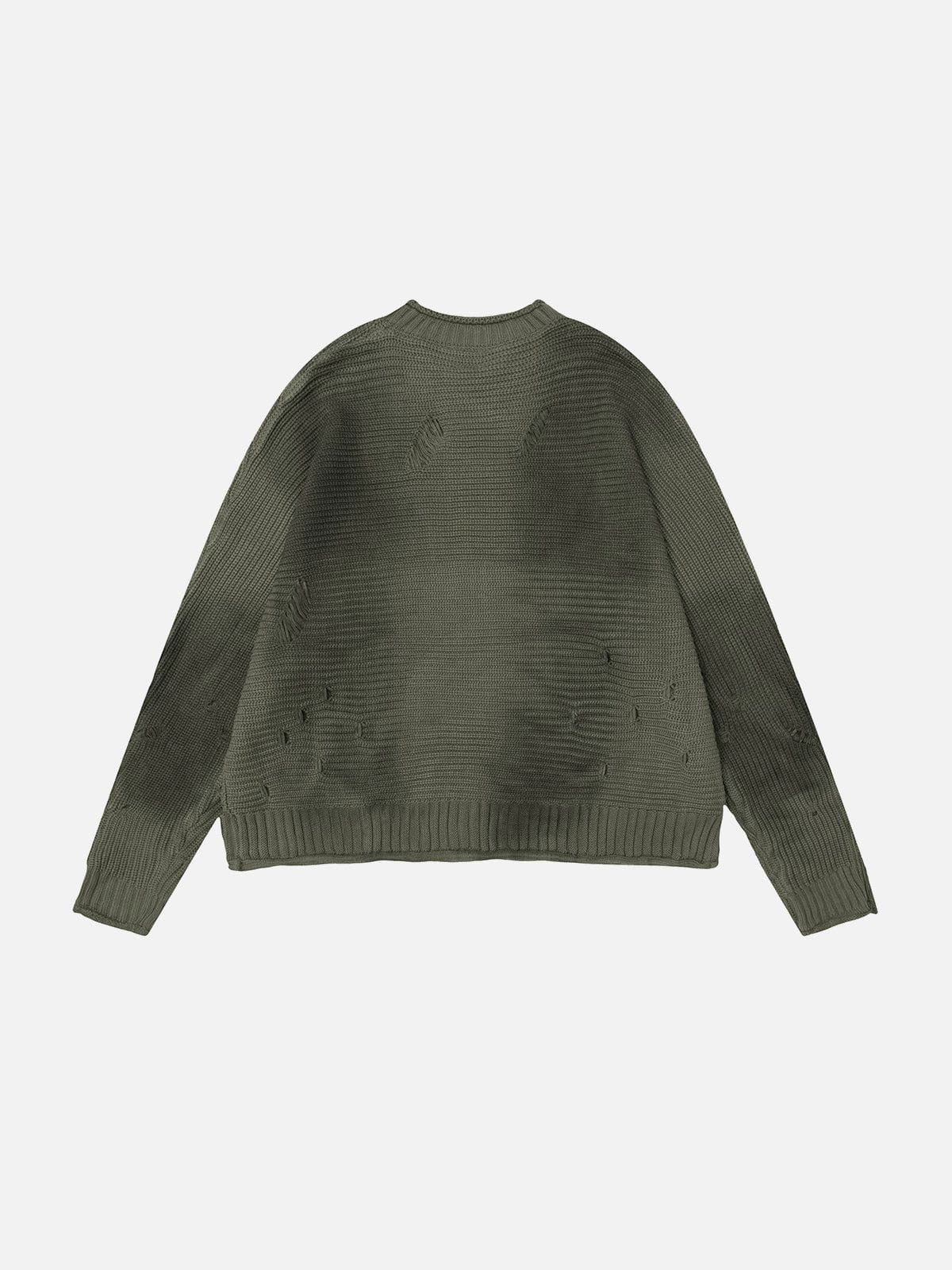 Featuring a distressed design with an eye-catching inkjet pattern on the cuffs. This sweater is made of high quality acrylic for a unique and stylish look, as well as comfort and durability. Show off your edgy sense of style in this one-of-a-kind sweater.
