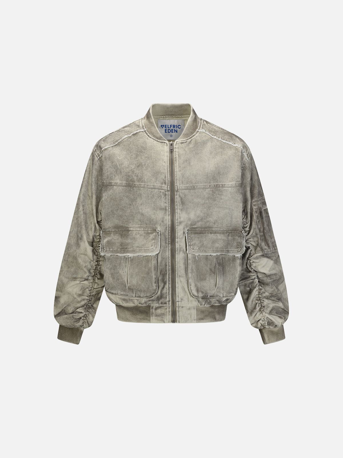 Fvshya Washed Plated Sleeve Zip Up Jacket