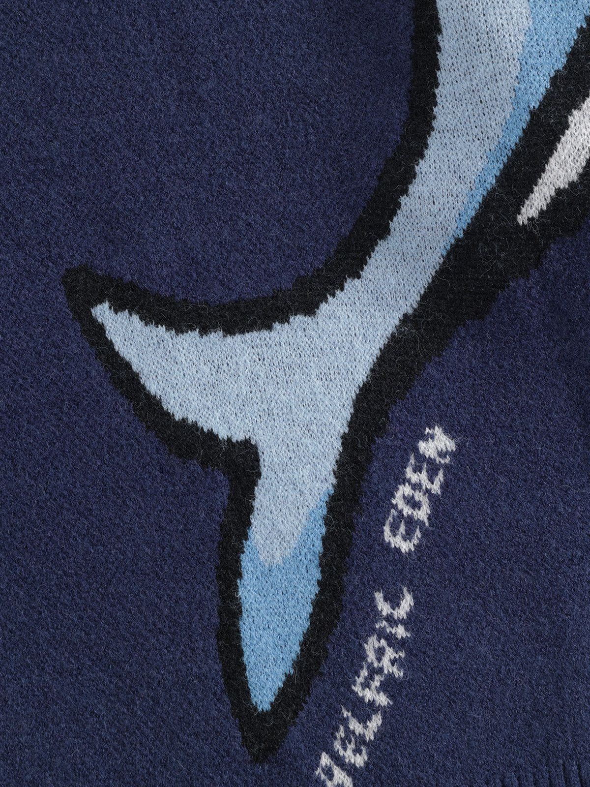 Whale Jacquard Sweater showcases a detailed graphic jacquard design that seamlessly blends artistry with craftsmanship. Constructed for superior comfort and durability, its refined knit offers a sophisticated texture and visual depth. Ideal for adding an elegant yet contemporary statement to any wardrobe.