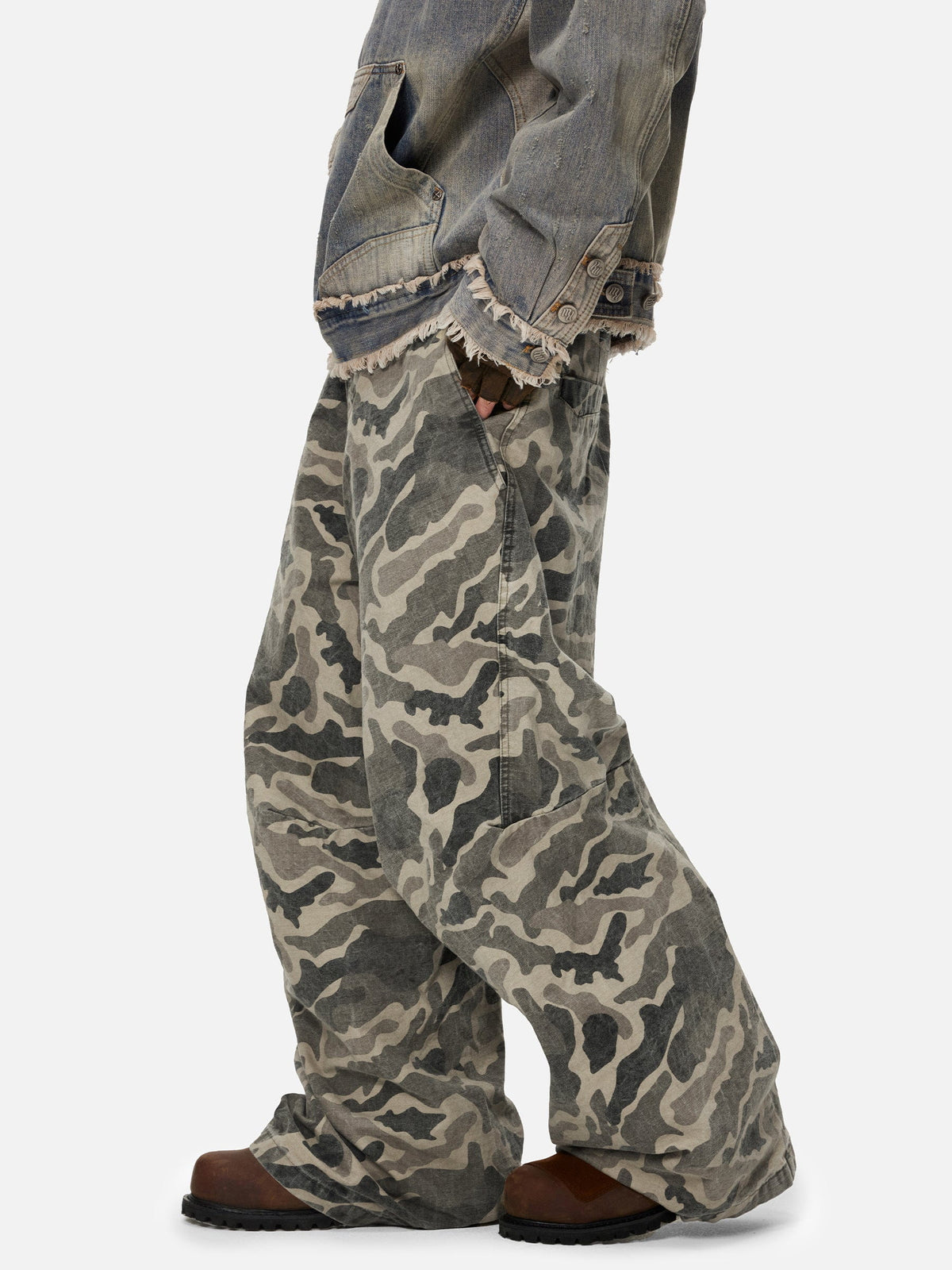 Discover the ultimate fusion of fashion and functionality with our Fvshya Wrinkle Camouflage Loose Jeans. Crafted with a blend of camo and denim, these loose fit jeans offer both style and comfort. Perfect for a casual day out, these jeans are sure to become your go-to option.