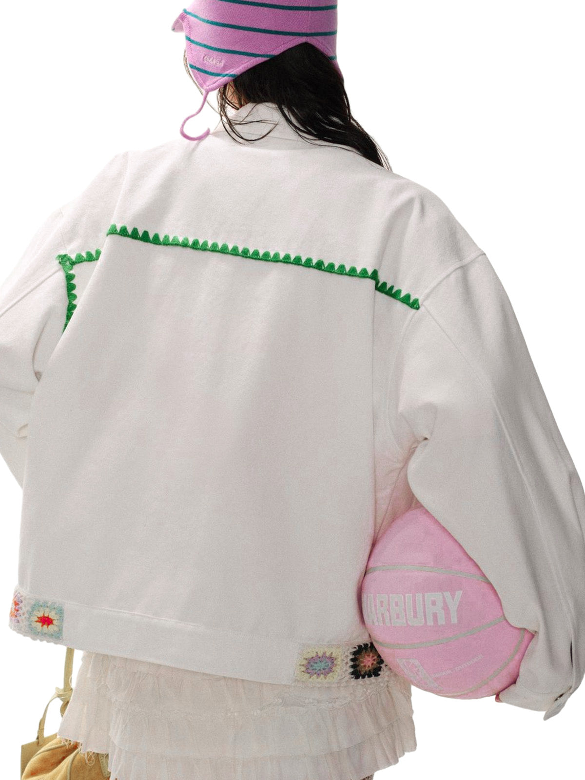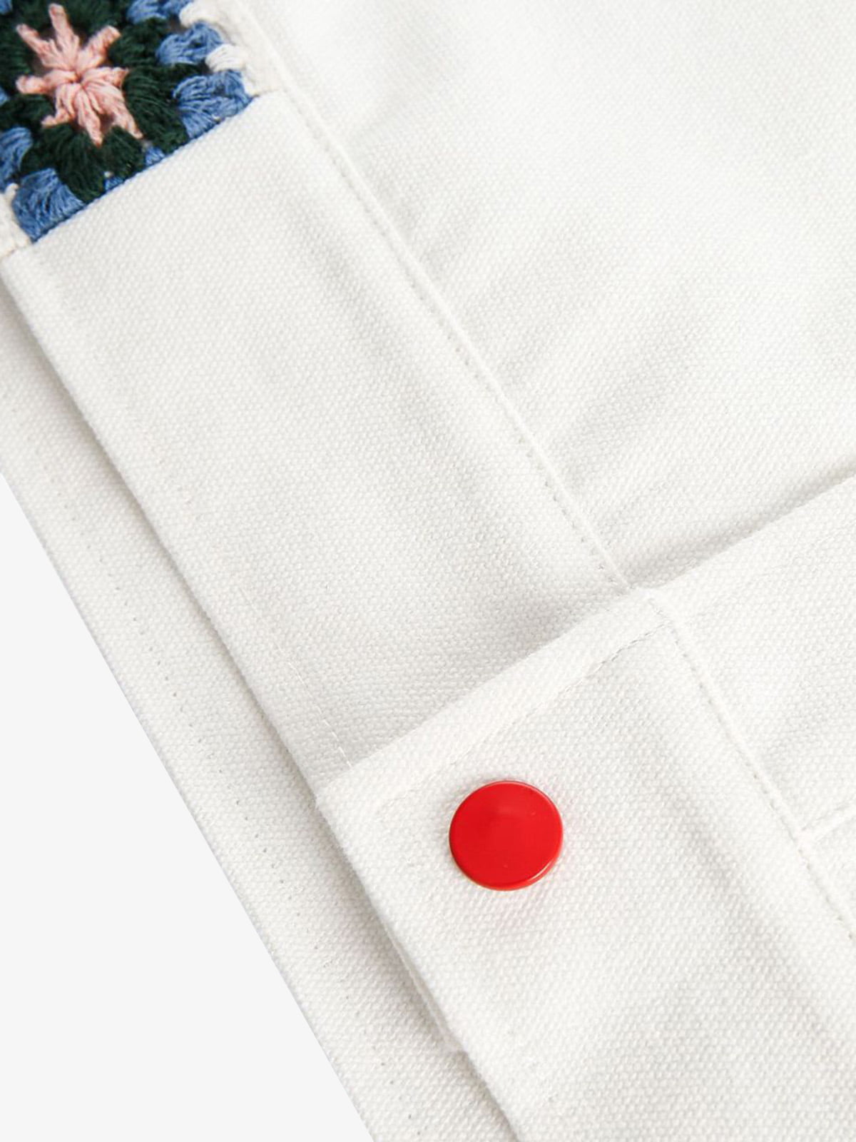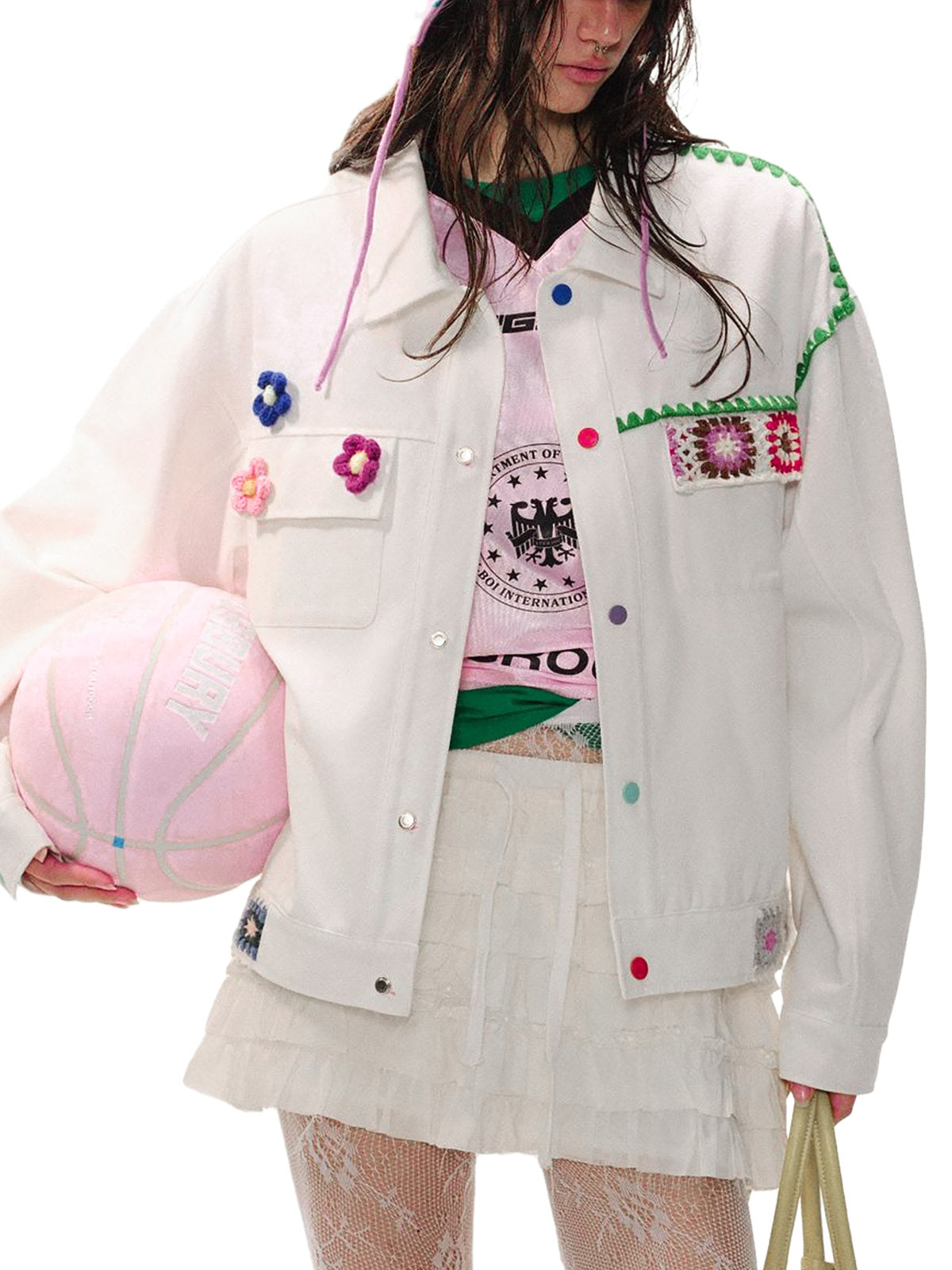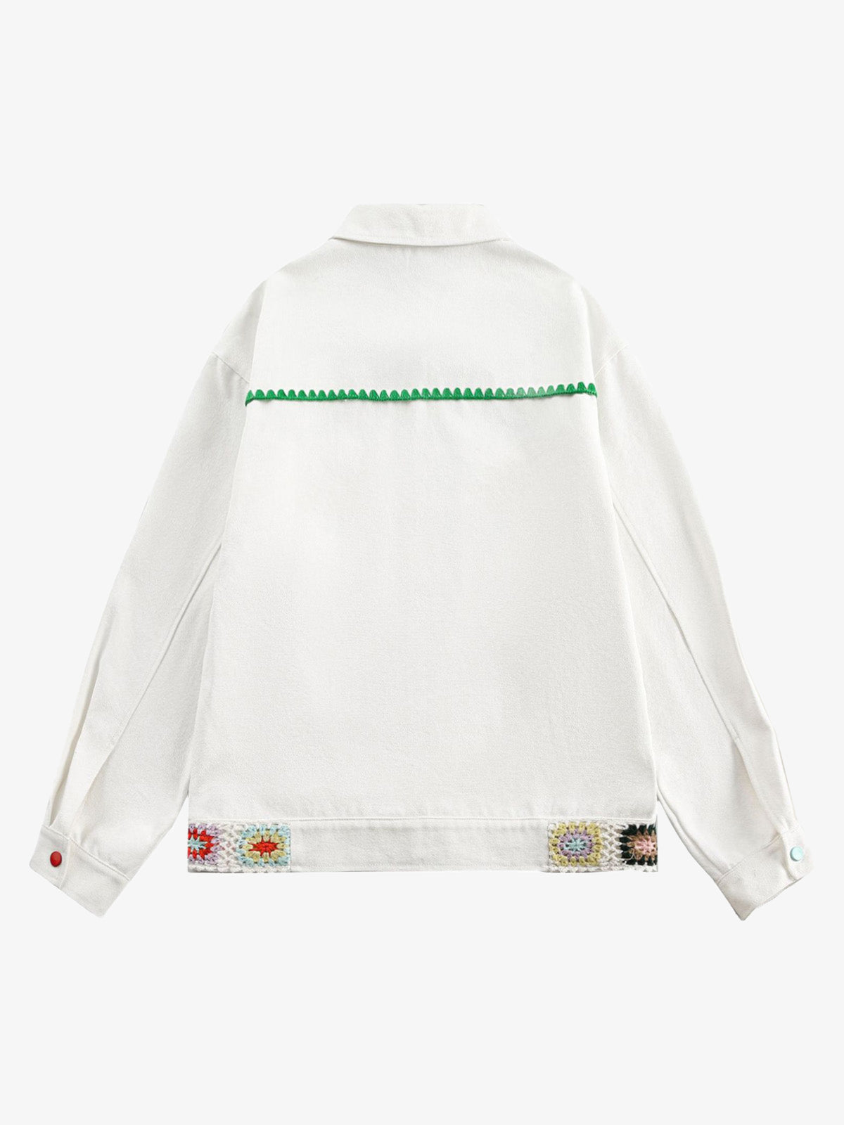 Fvshya Handmade Floral Crochet Utility Denim Jacket