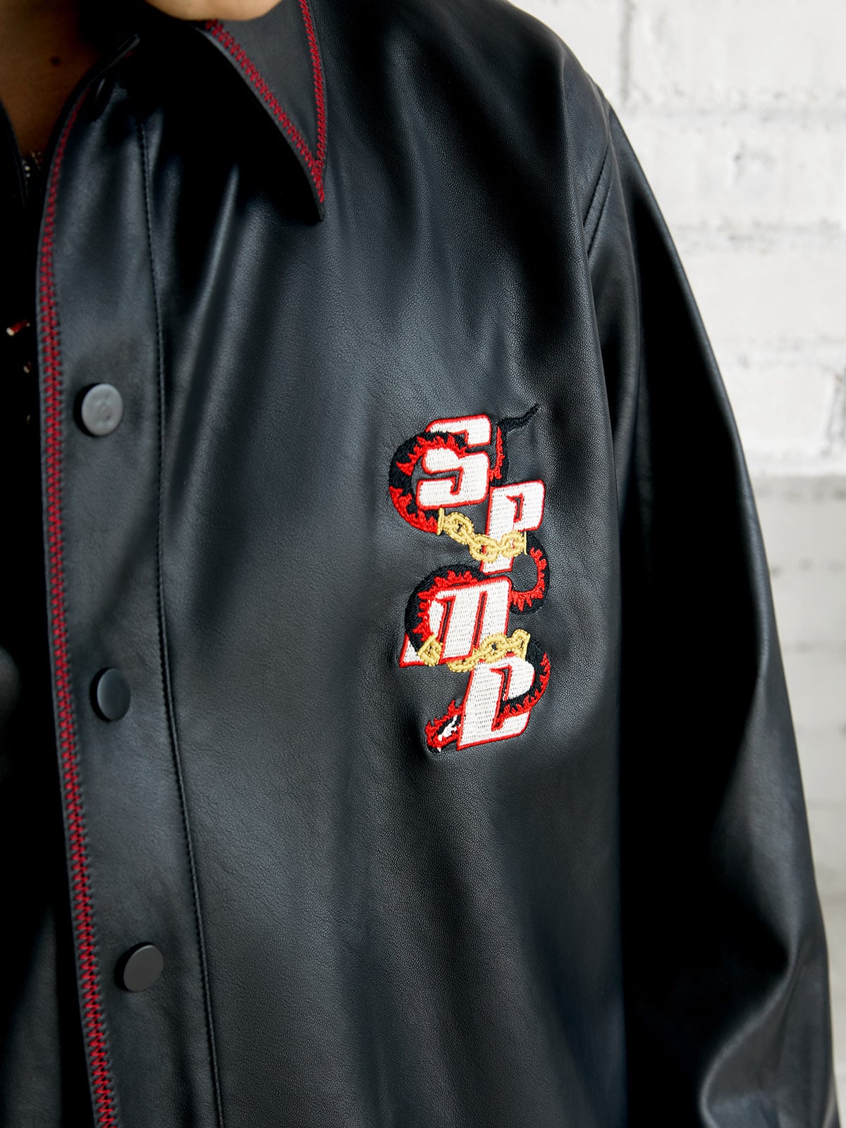 • Material: Premium Faux Leather with Red Stitching