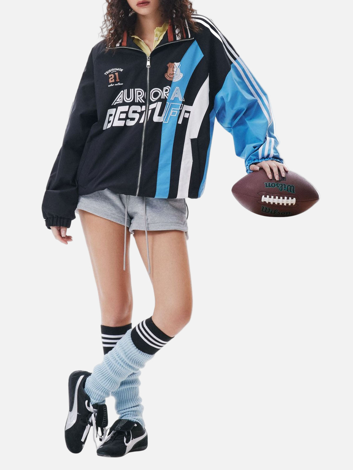 Fvshya Retro Contrast Color Stitching Jersey Jacket
