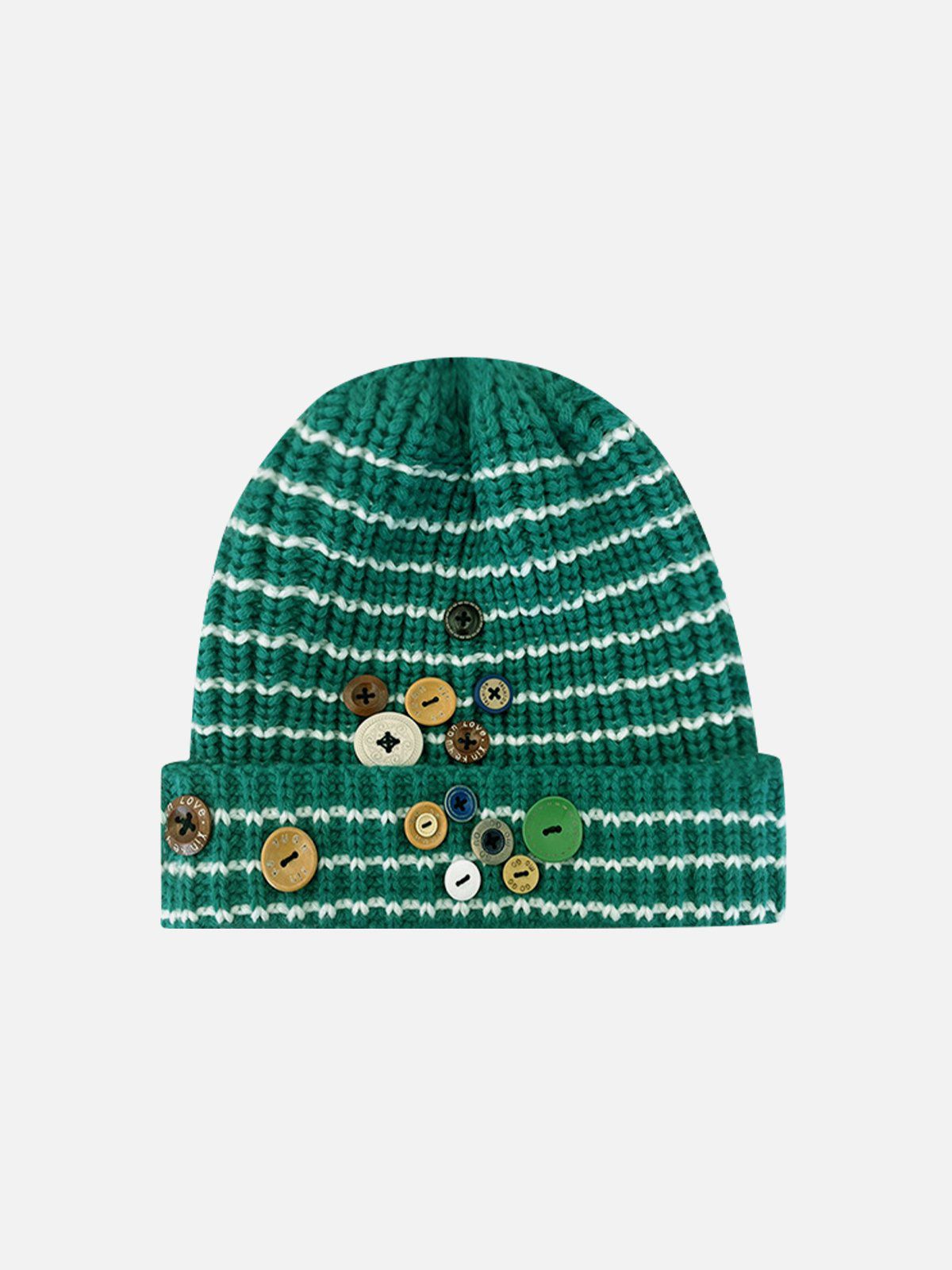Get ready to stripe up your style with our Stripe Button Knit Beanie! This one-of-a-kind beanie features a playful stripe design and quirky button details, making it a fun and unique addition to any outfit. Stay warm and on-trend with this cozy knit beanie.