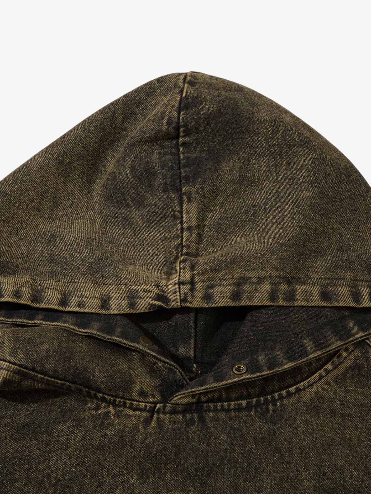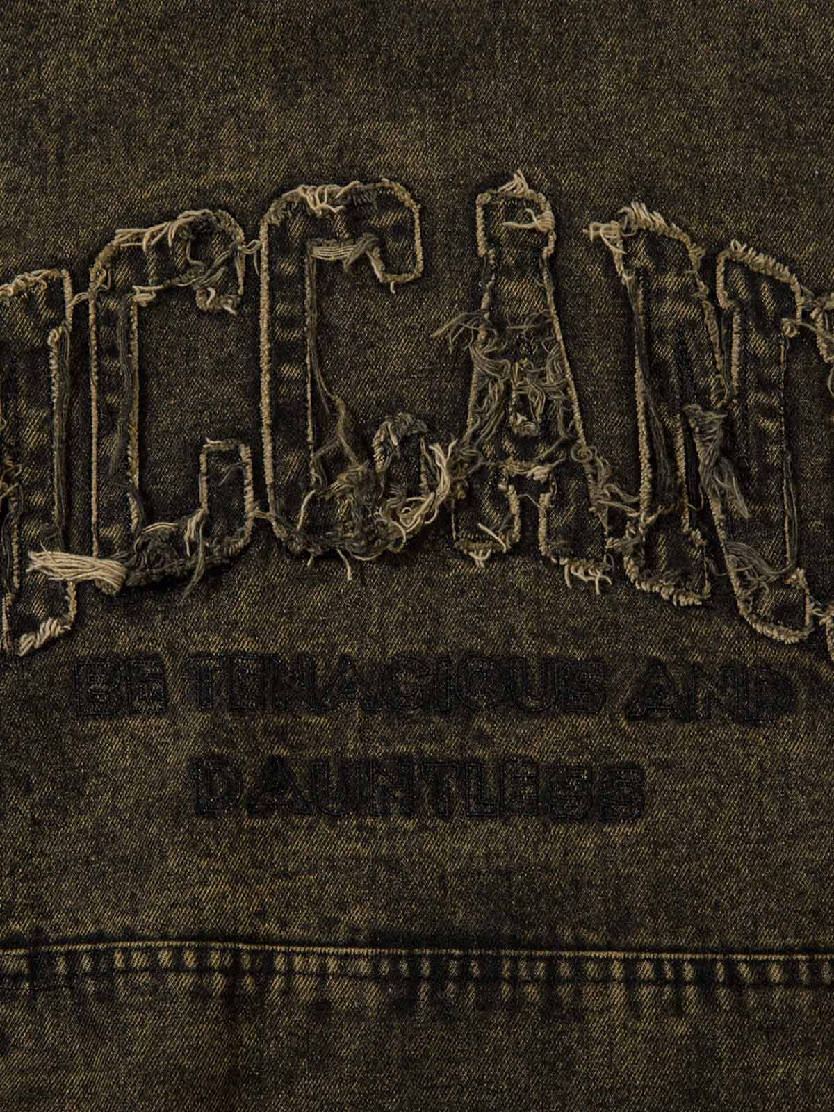 Fvshya Washed Distressed Embroidered Denim Hoodie