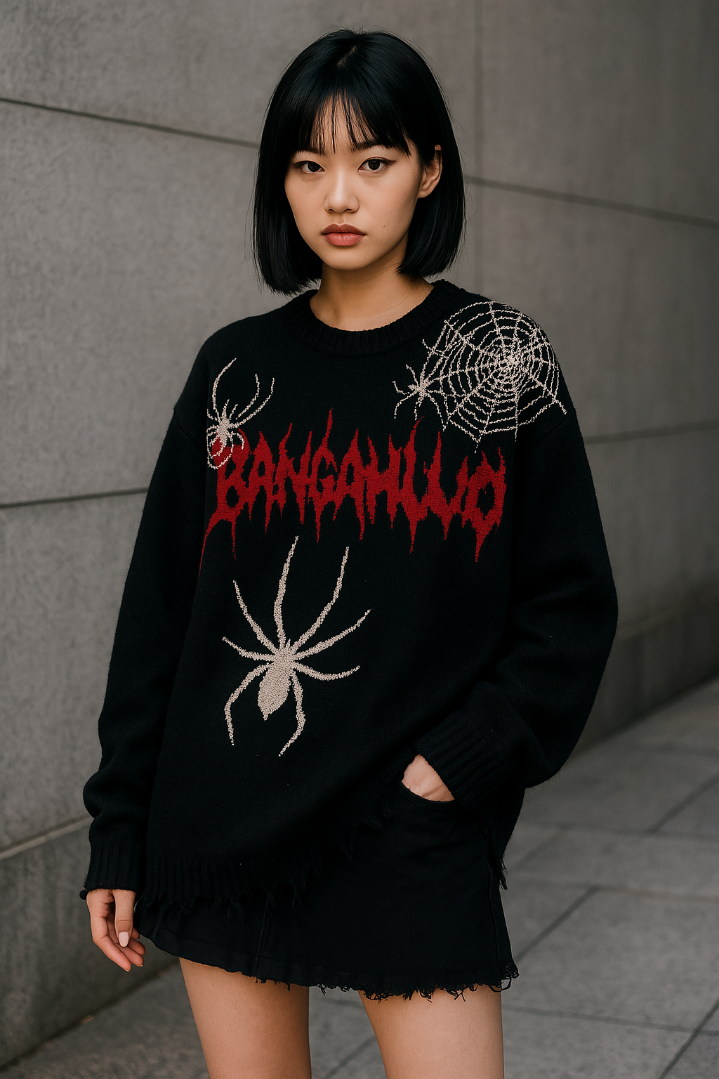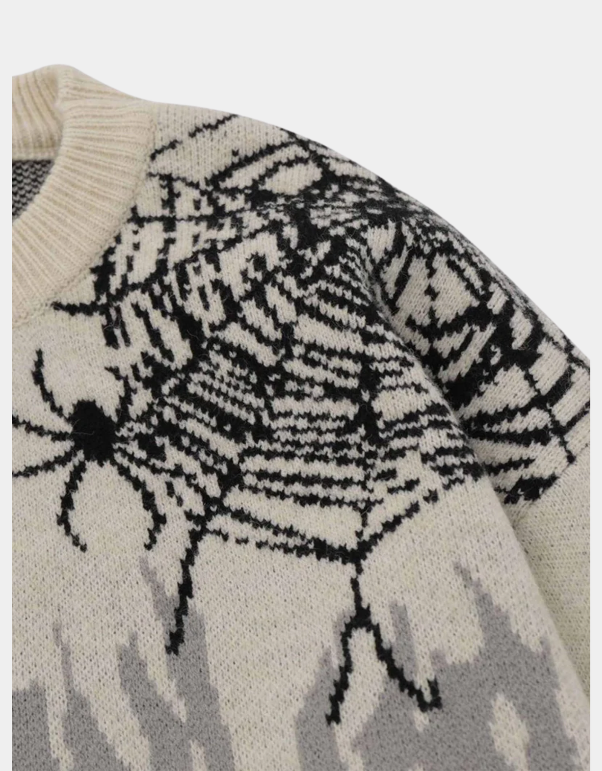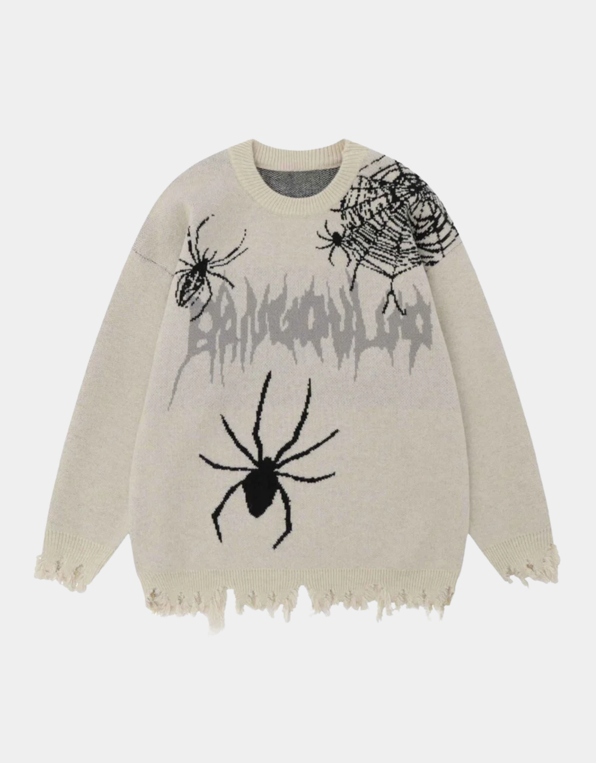 Featuring intricate spider web jacquard weaving, this sweater showcases distressed edge finishes for a worn-in look. Its oversized fit ensures exceptional comfort, and the design suits all genders seamlessly.